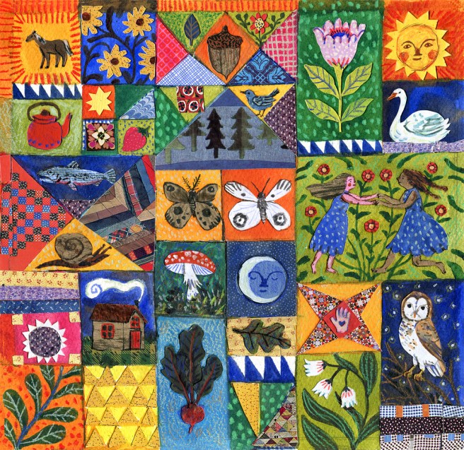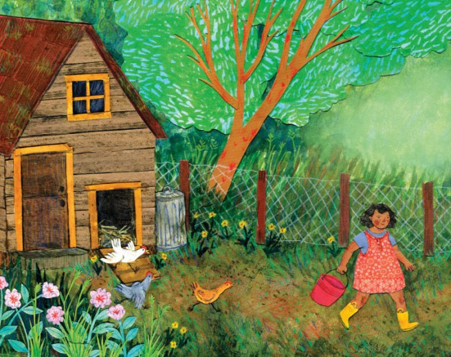 1. Been enamored of Phoebe Wahl’sart ever since reading her debut picture book Sonya’s Chickens (2015). Love the timeless, old-fashioned, folk art feel of her watercolor, collage and colored pencil illustrations. There’s a good reason she won the 2016 Ezra Jack Keats Award for New Illustrators. 🙂