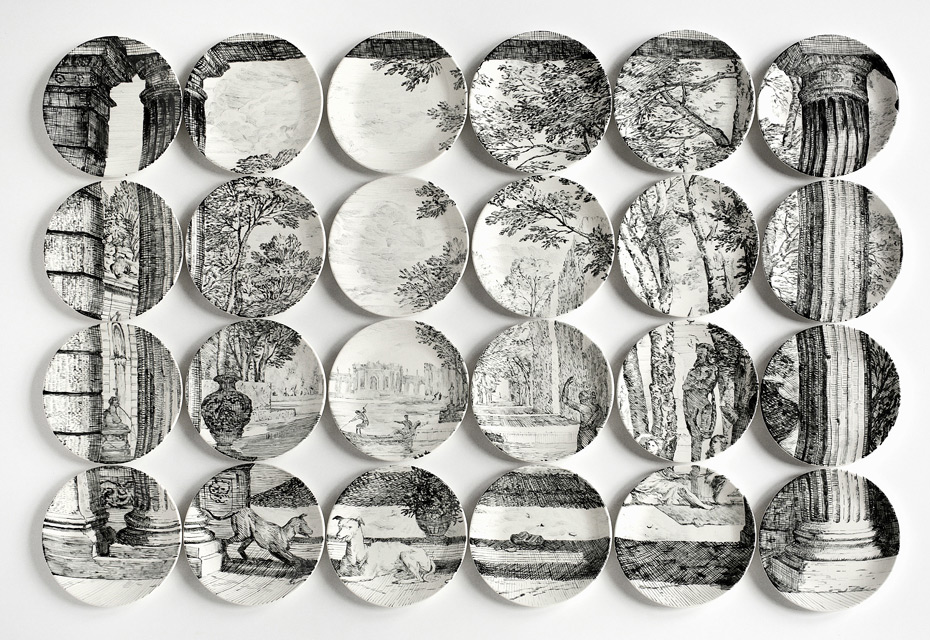 Covet Project, 2012 (inspired by historic imagery found in the collections at the MFA Boston and the Met in NYC)An 11-piece painting consisting of hand-thrown and hand-painted ceramic plates inspired by the historic textile collections at the Victoria & Albert Museum in London.“Deconstructed Lace” (2015), inspired by historic patterns of Royal Copenhagen Porcelain.