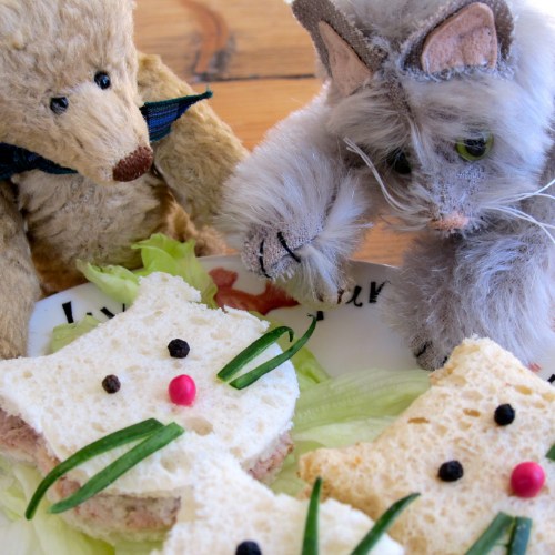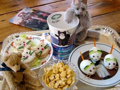 Cerebral dogs and cats wearing glasses! Birdies balancing on the edges of pretty china teacups! Other animals decked out in derby hats, bowties, berets, and tutus, some blowing bubbles, others stealing cupcakes! And a good number of them with mustaches :).