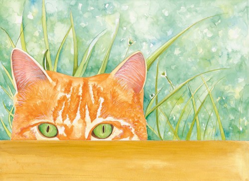 She’s an ardent animal lover living with two dogs and two cats who happily keep her company and provide endless inspiration for her drawings. I love the blend of realistic animals + whimsy + humor. Each of her paintings tells a story and you just can’t help but smile when you see them.