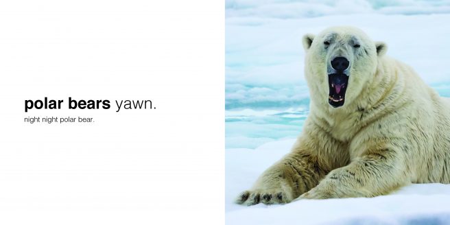 I’m a graphic and web designer and have always wanted to do a children’s book – I was just waiting for the right idea to strike. With a 4-year-old and a 2-year-old I read to them nightly and one book showed a character yawning which made us all yawn and I thought – what about a book all about yawns?! Children love animals and it seemed like the perfect combination. I like simple books that are easy to read (for tired parents at night) and love great photographs and clean, beautiful design. Plus – it helps get my little readers sleepy and ready for bed! My kids love the book and I’ve learned a lot in the process. It’s been an interesting project!