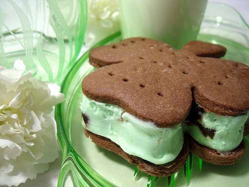 Recipe for Minty Shamrock Ice Cream Sandwiches here.