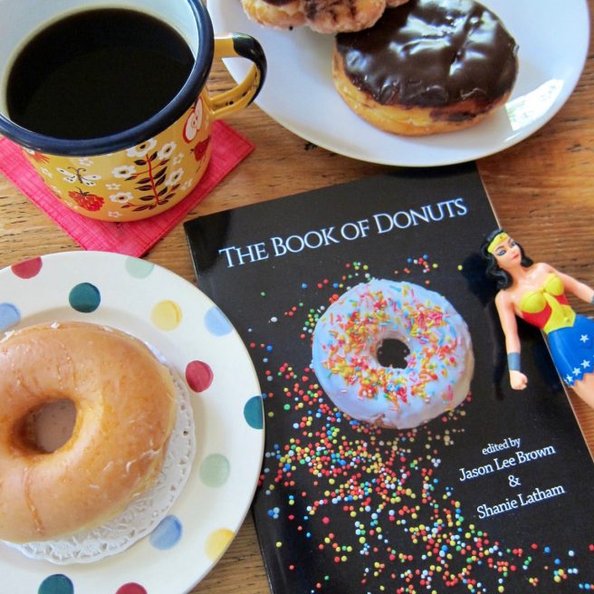 Times are tough. What’s a non-smoking teetotaler supposed to do? Why, pick up a copy of The Book of Donuts, of course! This delightfully sprinkled confection of a poetry anthology, edited by Jason Lee Brown and Shanie Latham, contains fifty-four poems by fifty-one poets for your nibbling, chewing, scarfing, and feasting pleasure.