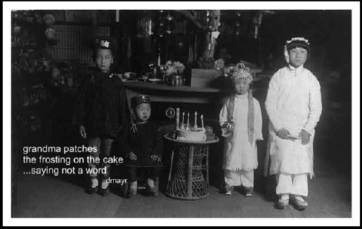The one and only Diane Mayr, Kurious Kitty herself, has just padded into the kitchen! Lithe and sleek in her silken coat, this fastidious feline, who loves a good haiga as much as prime albacore tuna, is treating us to a mini feast — a little sweet, a little piquant.