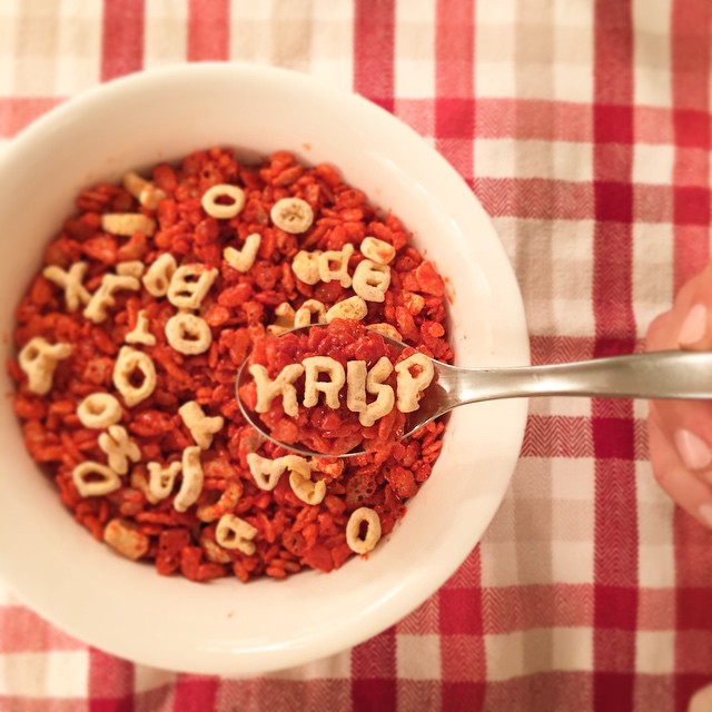 1.Check it: alphabet soup made with Rice Krispies! This crunchy bowl of fun was created by NY-based food artist Jessica Siskin, a.k.a., Misterkrisp, who spends her days crafting all things wonderful out of Rice Krispies, my favorite childhood cereal. 🙂
