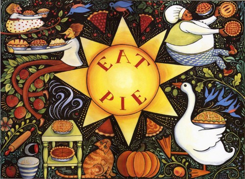 1. JULIE PAPRIKA is here! If, like me, you’re a fan of award-winning painter and children’s book illustrator Julie Paschkis, the good news is that now some of her work is available for purchase online as archival prints. I just ordered “Eat Pie,” which I’ve loved for several years because, well, PIE! 🙂 I love the shop name too (“Julie Paprika: Art Adds Spice to Life”). See more here. (Julie will be stopping by soon to talk about her new book, P. Zonka Lays An Egg, which is gorgeous!)