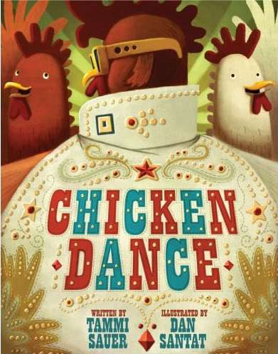 About a week ago, I announced that Elvis Poultry was in the building. Today, his creators, author Tammi Sauer (Cowboy Camp), and illustrator Dan Santat (Guild of Geniuses, Secret Life of Walter Kitty), have got plenty to crow about, because CHICKEN DANCE (Sterling, 2009) has officially hatched!