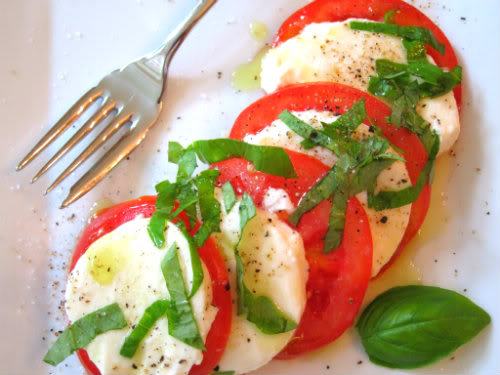 Brought home these babies and had a little InsalataCaprese for lunch. So easy to prepare, wholly satisfying, and quintessentially summer: sliced tomatoes at their peak ripeness, fresh mozzarella and basil leaves seasoned with Fleur de sel and freshly ground black pepper, extra virgin olive oil drizzled over the top. Magnificent in its simplicity, laid back and luscious, with each unadorned flavor taking center stage without an ounce of competition. Ti amo! Ti desidero!
