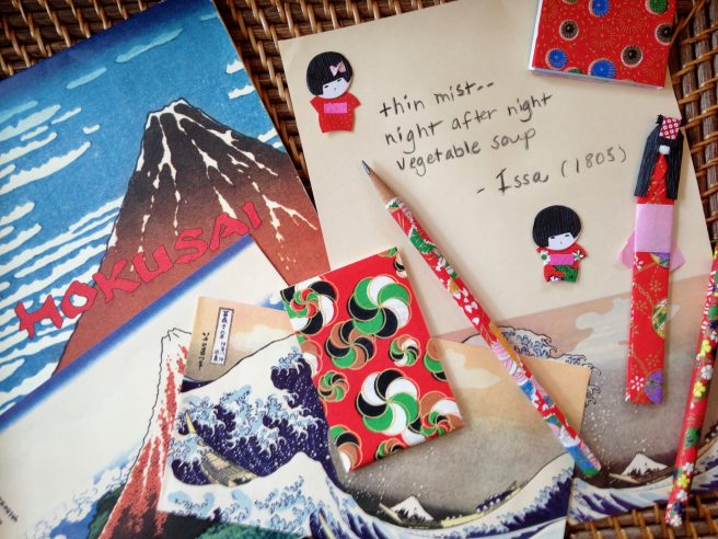 Issa is probably my favorite of the four great haiku masters. I love the endearing humanity in his poems and seeing traces of his personality shining through. How could I not appreciate a poet whose pen name translates as “cup of tea,” or, “a single bubble in steeping tea”?