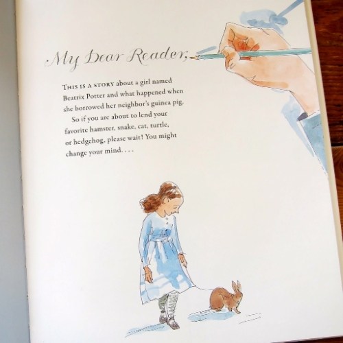 Since I’m a big Beatrix Potter fan, I was happy to see Beatrix Potter and the Unfortunate Tale of a Borrowed Guinea Pig by Deborah Hopkinson and Charlotte Voake published in time to celebrate Miss Potter’s 150th birthday this year.