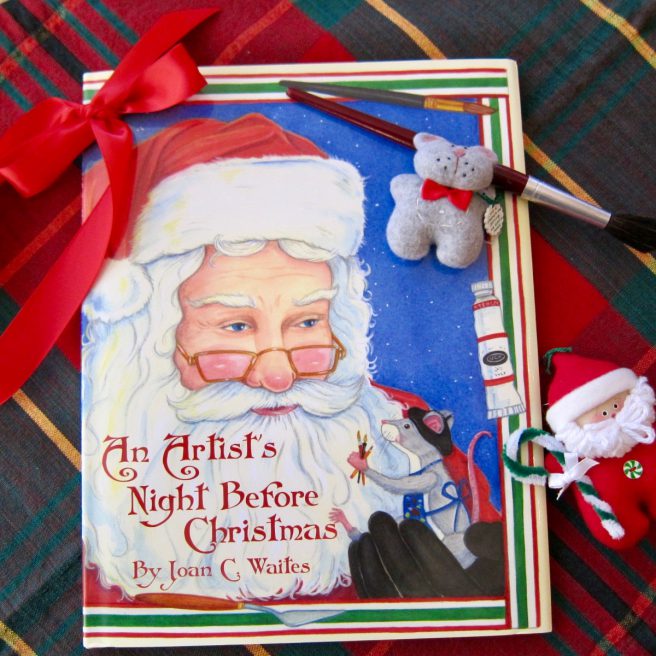 These are the questions award winning author/illustrator Joan C. Waites asked herself, and she’s detailed her answers in a delightful new picture book (the first she has both written and illustrated), An Artist’s Night Before Christmas (Pelican Publishing Co., 2017)!