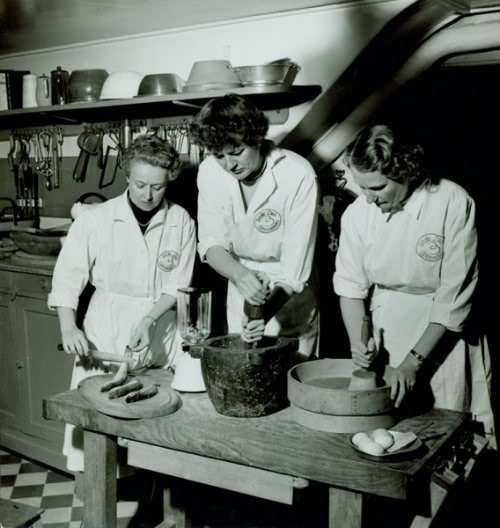 Julia with co-authors Simone Beck and Louisette Bertholle by Paul Child (courtesy of Schlesinger Library, Radcliffe Institute, Harvard University).