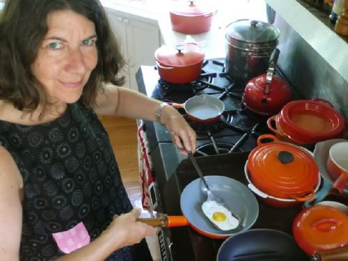 Phew! I’m glad she said that, because I wasn’t planning to tackle her 15-page French Bread recipe any time soon. It’s summer, the living is easy, and Julia has just the thing for those of us clamoring for an easy sweet fix. Oui oui, clafoutis!