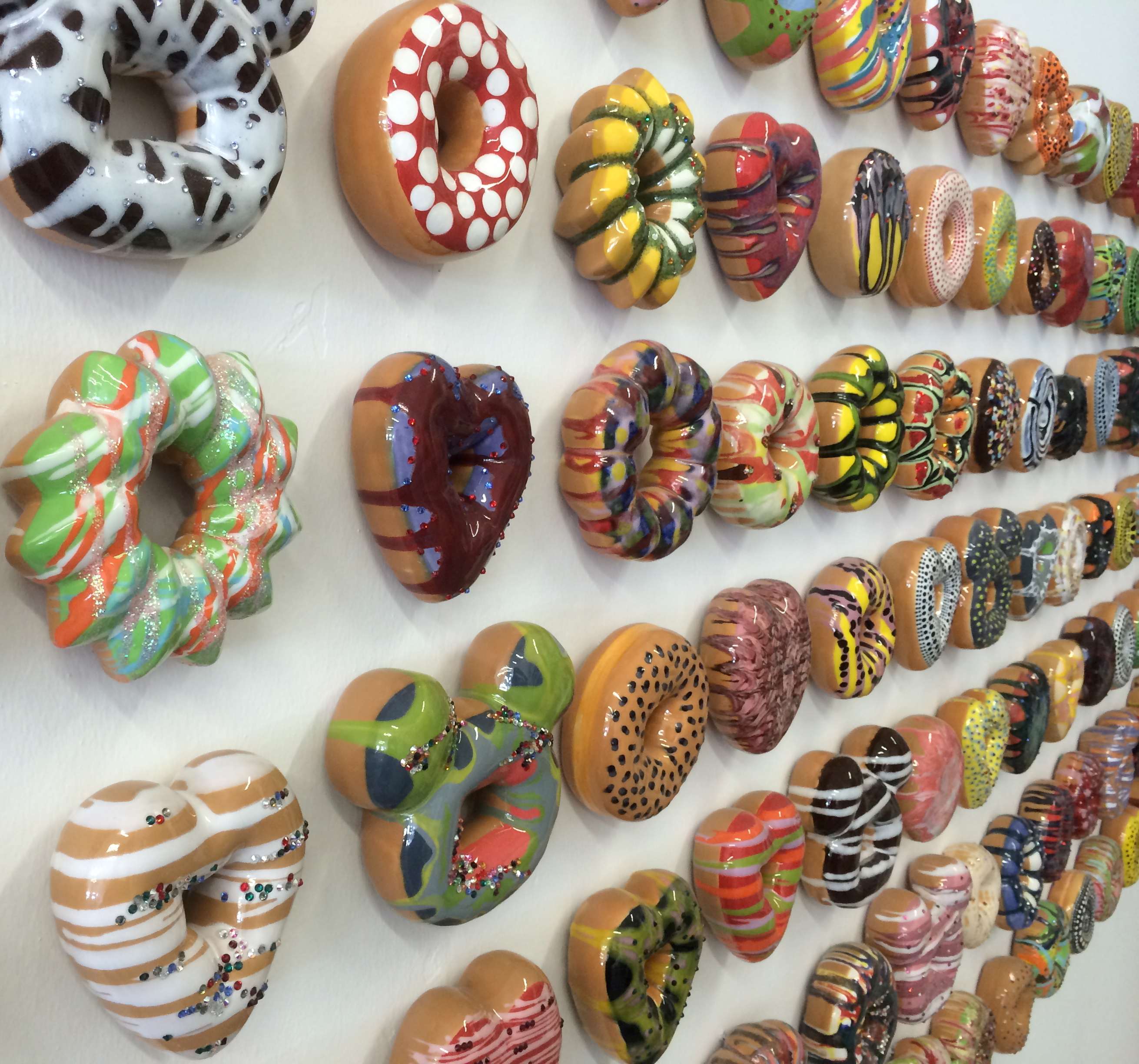 5. I’m a sucker for food art and like the idea of New Jersey artist Jae Yong Kim serving up donuts that never get stale. His are made out of ceramic and sprinkled with Swarovski crystals, white gold and gold luster. Delicious colors and designs!