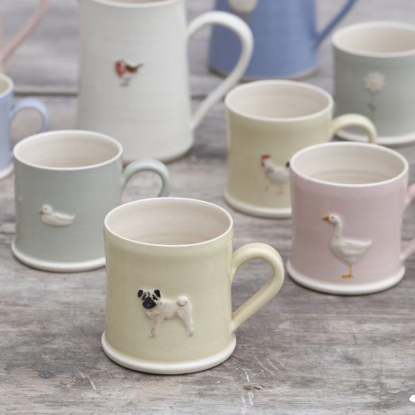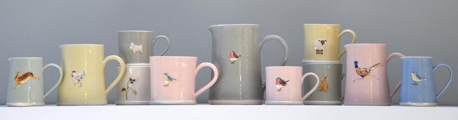 6. Pottery Fix: I’m in love with Hogben Pottery! Handmade in the UK, each piece is individual and unique. The colors are just luscious: cream, eau-de-nil, pink, denim blue. grey or primrose. There are a variety of decorations that are hand sculpted, hand painted, and then applied to the pottery (choose from mugs in two sizes and jugs in three sizes).
