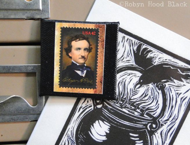 1. It’s Poetry Month, so why not celebrate with a cool handmade magnet by Robyn Hood Black of artsyletters? This beauty with the one and only Edgar Allan Poe features an authentic postage stamp issued to commemorate Poe’s 200th birthday in 2009. It’s collaged onto a 2″ x 2″ painted canvas board with a magnetic disc on the back. Imagine Poe’s eyes following you from the fridge! 🙂