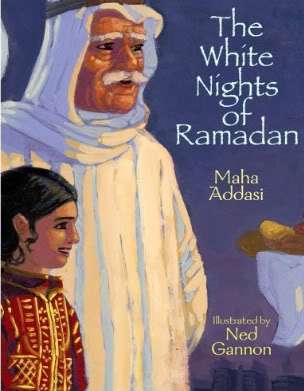 After all, she’s the one who had a fascinating, glamorous career as a news correspondent and producer for Jordan and Dubai Television. The one who interviewed royalty and heads of state, cosmonauts, opera singers, musicians, and world-renowned scientists. The one who attended openings of Parliament, lunched in the royal palaces in Jordan, and who, once upon a time, attended the New English School in Kuwait with Queen Rania.Maha once told me that she likes to keep busy. Since moving to the U.S. in 1998, she has shifted her focus to writing for children. And why not? She has four of her own — two teenage girls, and two boys under the age of 10, a little posse that would decidedly challenge even the most resilient of supermoms, while at the same time providing neverending story fodder.Just last month, Maha’s first picture book, The White Nights of Ramadan, was released by Boyds Mills Press (my review is here). The “white nights” refer to three days in the middle of