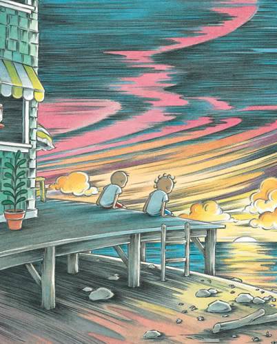 Marla Frazee has captured the essence of summer and friendship in this perfectly pitched picture book, which is part narrative, part scrapbook, part comic book. Based on the real-life experiences of her son, James, and her editor, Allyn Johnston’s son, Eamon, this story will appeal to a wide range of ages because of its accessible humor and oh-so-familiar premise.