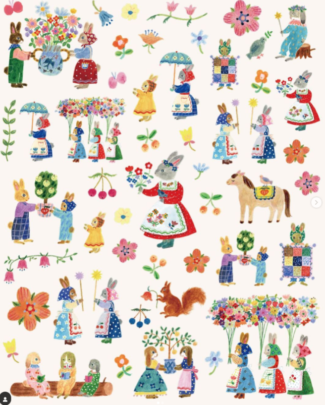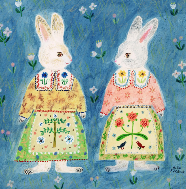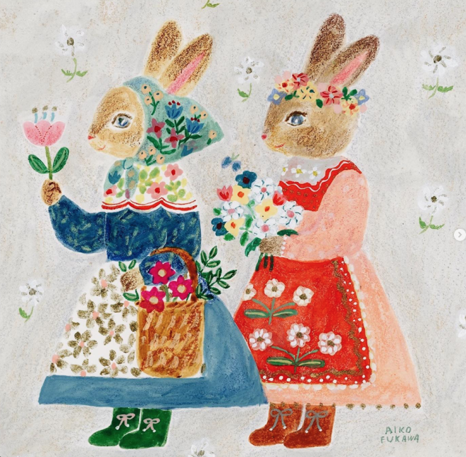Though she considers cats her spirit animal, I especially love her rabbits. With Easter coming up at the end of the month, I simply can’t get enough of them! In addition to animals, Aiko is inspired by everyday life, plants, and music.