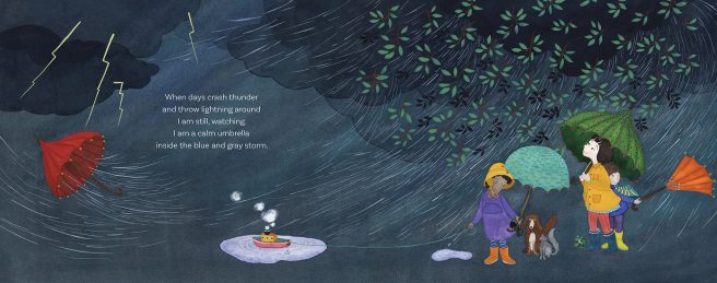 Young readers will be able to see how nature can be a reassuring refuge in times of trouble, worry, sadness, or other emotional imbalance. By summoning the inner self, they can be a “calm umbrella” in the face of turbulence, or a strong, steadfast tree that remains patient in all seasons.