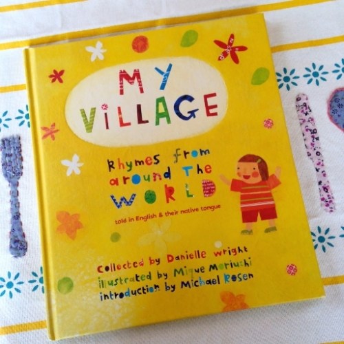 Because I loved Mique Moriuchi’s charming illustrations in Irene Latham’s new poetry book Fresh Delicious, I zipped over to her website to see more and happily found My Village: Rhymes from Around the World (Frances Lincoln, 2015), which features twenty-two verses collected by New Zealander Danielle Wright.