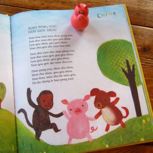 What makes this collection especially interesting is that the poems are presented in their native languages alongside an English translation. So we travel to fascinating places from New Zealand to Norway, Jamaica to Japan, and Indonesia to Iran, reading some of the very first rhymes children in those countries learn.