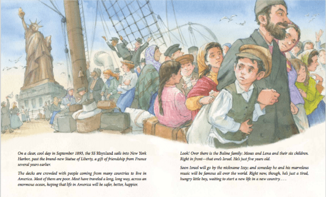 Last month, a new picture book biography was released that introduces young readers to Berlin’s extraordinary life and legacy. Write On, Irving Berlin! by Leslie Kimmelman and David C. Gardner (Sleeping Bear Press, 2018), traces Berlin’s life from the time he arrived in America with his family in 1893 until his death at age 101. He wrote some 1500 songs, comprising a substantial part of the Great American Songbook.