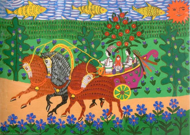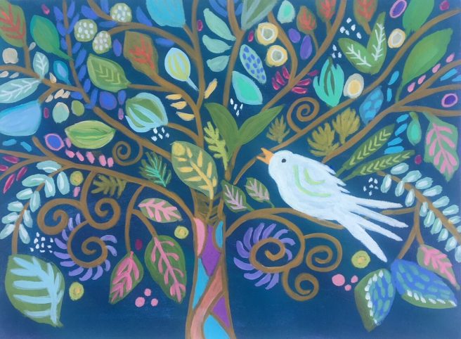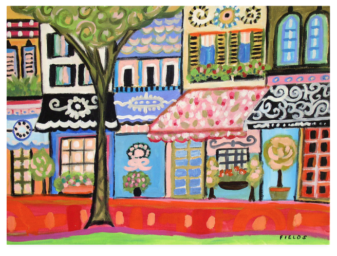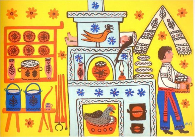 This piece immediately caught my eye as it speaks to my love of naive art and my special interest in interiors (especially kitchens and dining rooms). If there’s a table set with cute crockery, or vintage textiles and furnishings in a cozy room, I’m all in. I like the calm and comfort of quiet, domestic spaces and appreciate the joys of common experiences depicted with just the right touch of nostalgia.