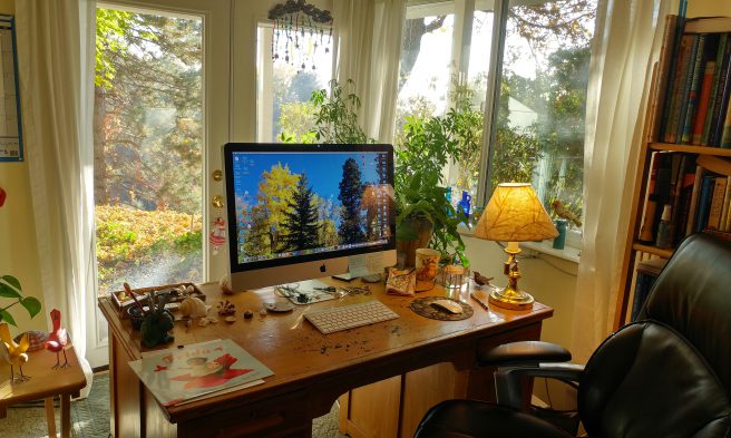 I did a lot of online research about mindfulness in addition to getting a few books, and I copied and pasted some of the ideas and lists and definitions I found into a document. Then I tried to turn each of the rather abstract ideas into an imagistic poem. Show, don’t tell! Although I didn’t write outside, my office windows overlook a tree-filled canyon, which is a good fit for this book full of trees.
