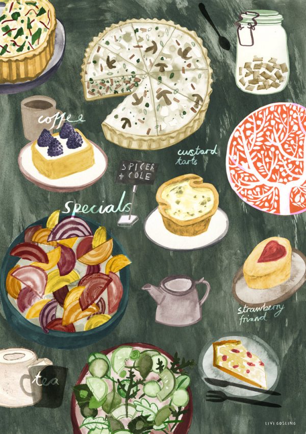 Livi’s portfolio includes a variety of interesting editorial illustrations — not only foodie ones, but wonderful maps, cityscapes and outdoor scenes for clients such as Taproot, Conde Nast, and the Telegraph. Love her refreshing, upbeat, charming style.