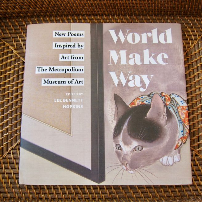 In World Make Way: New Poems Inspired by Art from The Metropolitan Museum of Art (Abrams BYR, 2018), we are treated to 18 original poems written by contemporary poets in response to 18 visual masterpieces from the Met’s vast collection. The art represents a diverse world view, spotlighting different time periods, artists, and cultures, and it is rendered in a variety of media (oil, tempera, pencil, ink, watercolor, silver, gold, acrylic) on different bases (canvas, paper, wood, silk, PVC panels). The poets (who were specially commissioned for this project), are among the finest writing for children today. In short, an exquisite book — a heartful, soul nourishing feast for the eyes and ear.