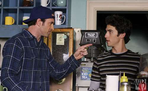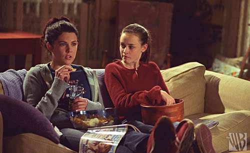 No, I can’t pick a favorite episode. Maybe it’s the small moments I love best: Rory spelling out “Happy Birthday” in Mallomars on the kitchen table, Logan renting a coffee cart to win Rory’s favor, Rory’s first kiss with Dean in Doose’s Market and then her waving a box of cornstarch while telling Lane, Sookie baking a table full of gourmet desserts for the Yale Bake Sale; Lorelai, Rory and Dean watching “Willy Wonka and the Chocolate Factory” while eating pizza and huge amounts of sickening junk food, Rory and Jess eating street vendor hot dogs in NYC, or the time Rory commissions the world’s largest pizza as a birthday surprise for Lorelai.