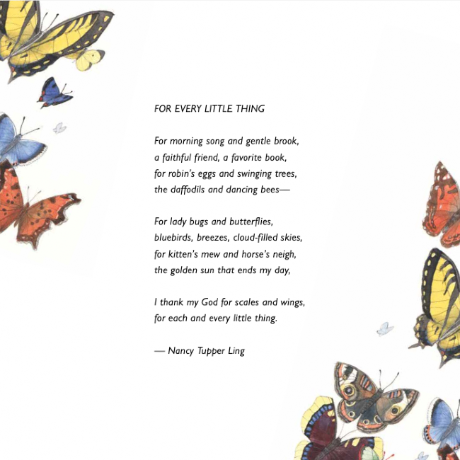Each poem explores a distinct rainbow type and is accompanied by a scientific sidebar of fascinating tidbits. In Rainbows of Light, we see how a rainbow can transform cursed rain into a joyful surprise, and are playfully introduced to Sun Dogs and Pilot’s Glories, before becoming enchanted by a moonbow in southern Africa. We are then reminded of our ability to make our own rainbows with gems and crystals.