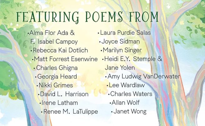 Though this is her first poetry collection, it’s not the first time Lee has visited us. She was one of our Potluck Poets back in 2012, the same year she won the Lee Bennett Hopkins Poetry Award for Won Ton: A Cat Tale Told in Haiku (Henry Holt, 2011). We loved her purrfect “Catku” and the recipe she shared for Kitty Litter Cake. Me-wow!