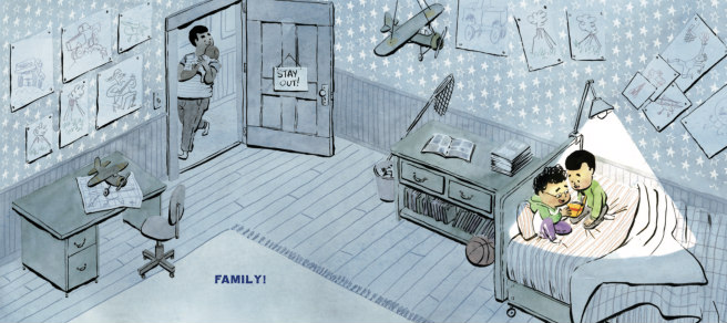Because we know kids are multi-dimensional, Calvin is not only a word nerd, but a kid who stands up to bullies, who passes notes in class, and who loves baseball. Being a huge baseball fan myself (go, Angels!), I was delighted to see how the talented illustrator Mike Deas wove the baseball thread throughout his whimsical illustrations, using a baseball, bat, and glove on Calvin’s bedroom floor from the beginning page all the way to the end of the book. I’m sure kids will have fun exploring all of Mike’s other humorous details in the pictures. Look for the baby’s and the cat’s and the ever-present dad’s expressions. My editors cooked up the clever idea for the end pages, which set the perfect tone for the book. It’s been a team effort. I hope you are always able to find just the right word whenever you need it!