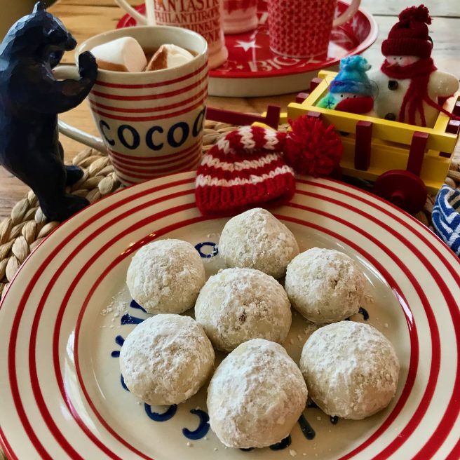 On a day like today, it’s nice cozying up indoors, safe and warm, gazing out the window while noshing on hot chocolate and snowball cookies. Join me?