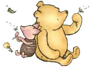 “By-and-by Pooh and Piglet went on again. Christopher Robin was at home by this time, because it was the afternoon, and he was so glad to see them that they stayed there until very nearly tea-time, and then they had a Very Nearly tea, which is one you forget about afterwards, and hurried on to Pooh Corner, so as to see Eeyore before it was too late to have a Proper Tea with Owl.”  ~ from THE HOUSE AT POOH CORNER, by A.A. Milne (E.P. Dutton & Co., 1928).