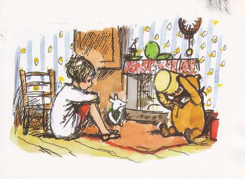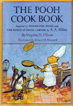 In any case, the new Pooh Cookbook, just released in October 2010, is quite lovely, as it contains full color illustrations from Winnie-the-Pooh and The House at Pooh Corner, as well as the eight original pen-and-ink drawings by Ernest H. Shephard commissioned by Dutton in 1966. Like its predecessors, the new cookbook is sprinkled throughout with excerpts from both Pooh books and features approximately 60 tasty recipes, all guaranteed to feel yummy in your tummy: Breakfasts, Smackerels, Elevenses & Teas, Provisions for Picnics & Expotitions, Lunches & Suppers, Desserts & Party Recipes, Winter Delights and Honey Sauces.