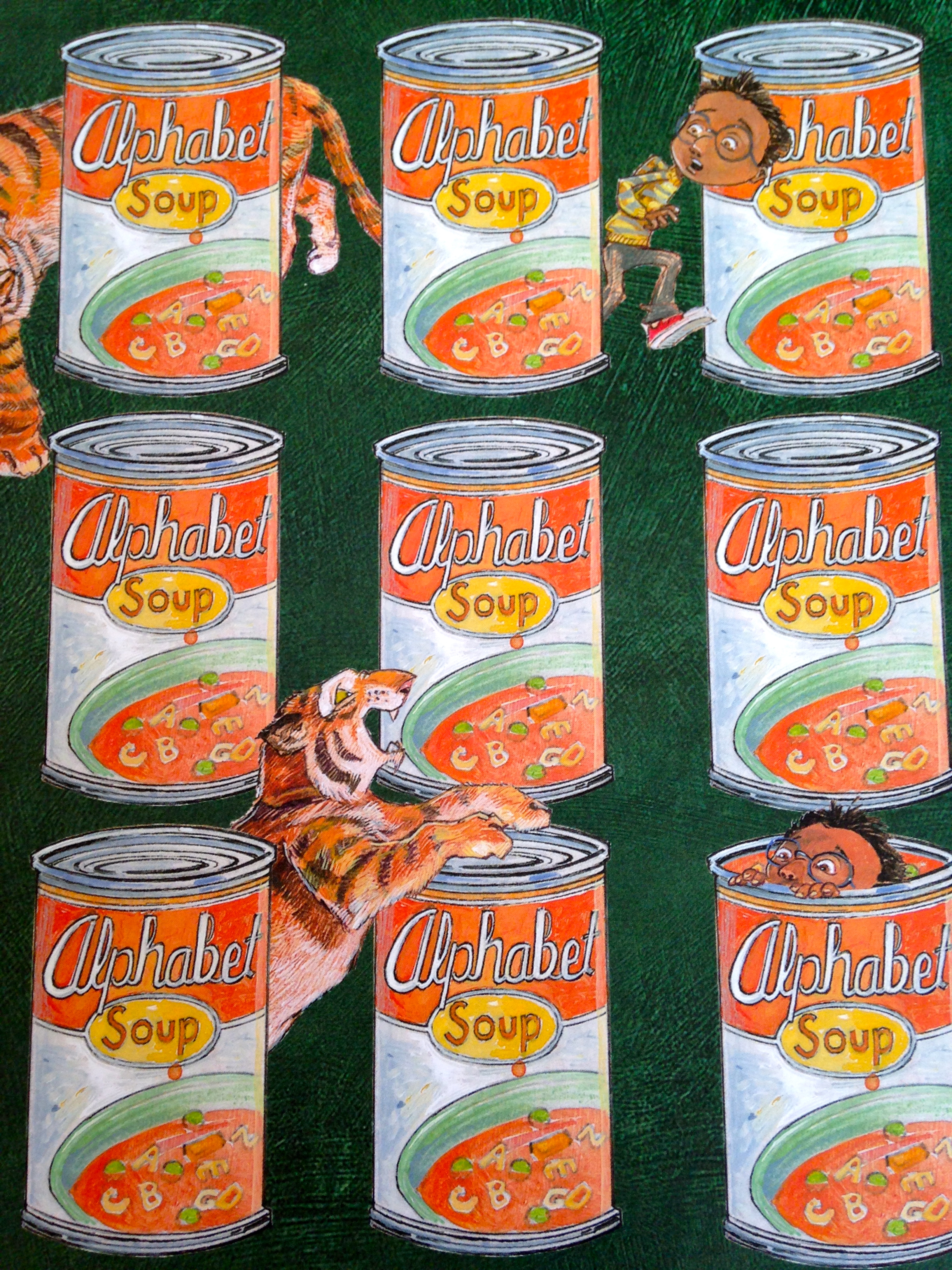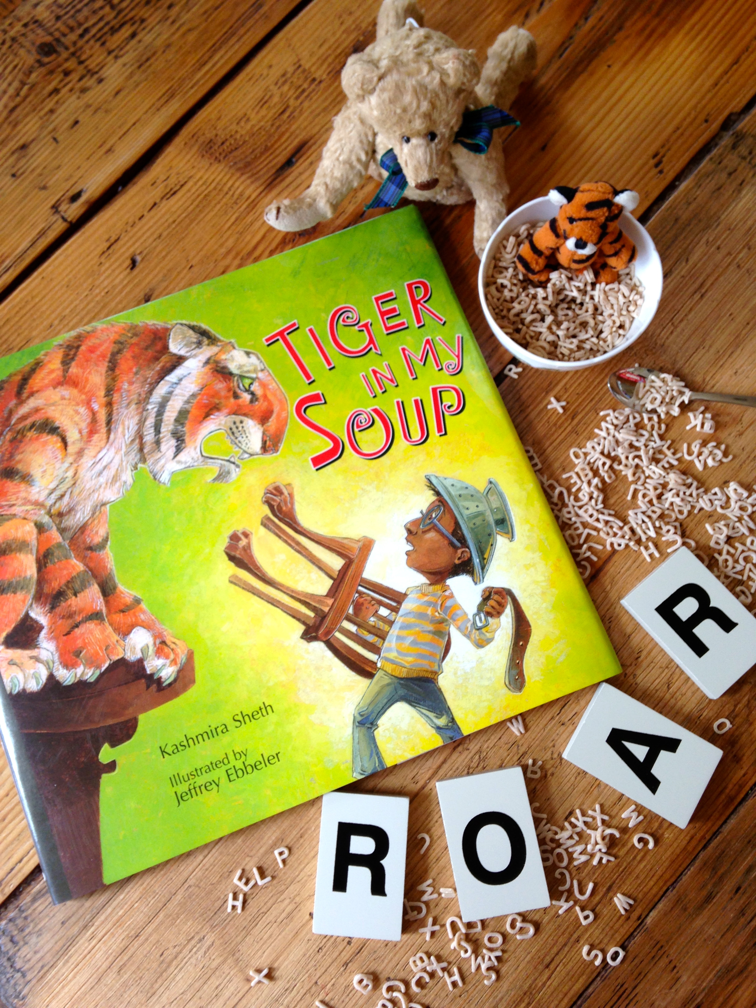 InTiger in My Soupby Kashmira Sheth and Jeffrey Ebbeler (Peachtree Publishers, 2013), a young boy left in the care of his older sister begs her to read his favorite tiger book to him. Alas and alack, she is too absorbed in her own book to pay him any attention, prompting the boy to pull out his most imaginative stops to get her to change her mind.