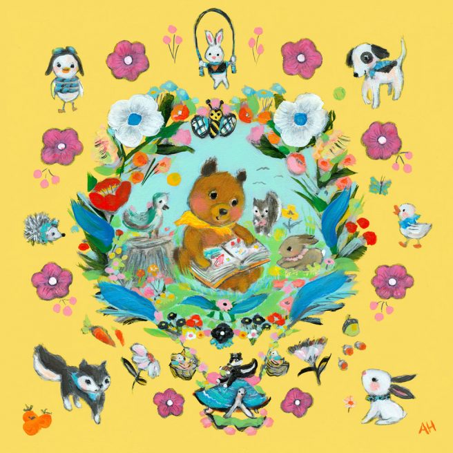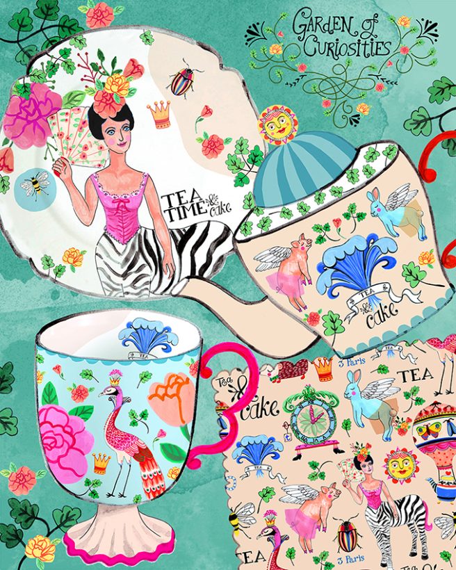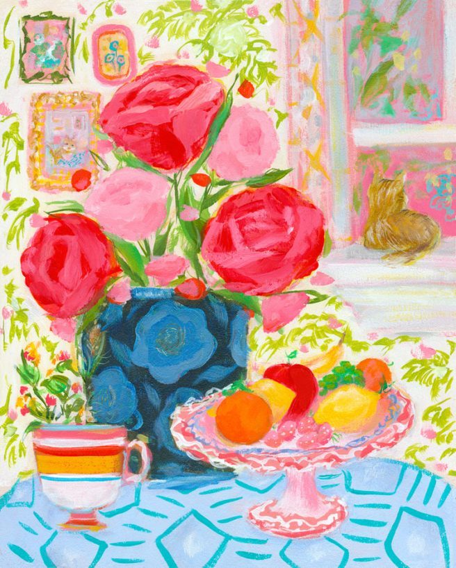 Fun, whimsical, playful: when you step into a Paige Spearin painting, you know you’re going to have a good time. Inspired by things she truly enjoys (travel, tennis, skiing, interior design, parties, flowers, bike riding), Paige works her magic with India ink, watercolor, gouache, and sometimes acrylic and oil.