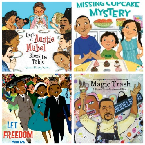 Here are some of Vanessa’s children’s books in case you’re not familiar with her work. She’s illustrated a number of picture books (including two based on Bob Marley’s lyrics and Think Big by Liz Garton Scanlon, which we featured here), many chapter books, and she’s also self-illustrated Let Freedom Sing, a picture book highlighting significant events in the Civil Rights Movement and — *wait for it* — a food-related book called: Don’t Let Auntie Mabel Bless the Table. 🙂 Her projects aptly reflect the many facets of her creativity and enviable versatility as an artist. Her pictures are infused with energy and vitality and reflect her genuine love of people.