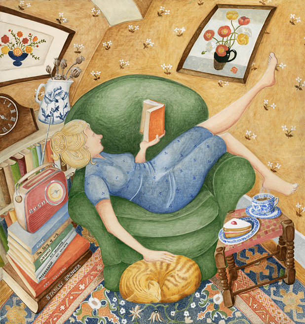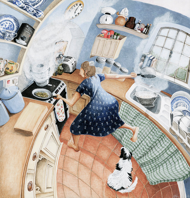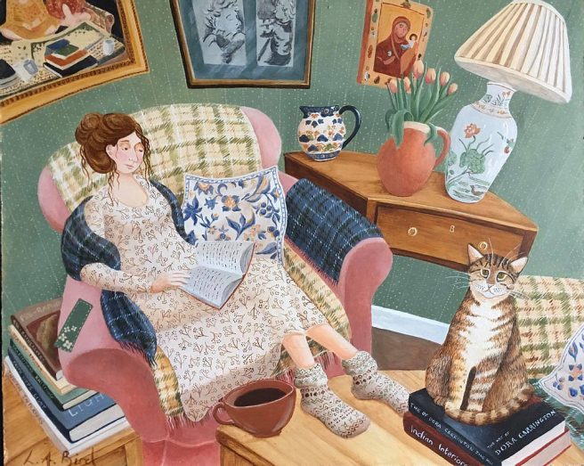 She’s inspired by slow, seasonal, simple living, hoping her art will inspire others to take time to enjoy life’s little daily miracles. I like escaping to her idyllic depictions of children playing in the snow, families baking cinnamon rolls together, the joy of a wonderful ruff ruff surprise on Christmas morning.